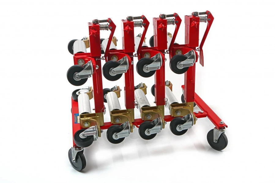 Het verplaatsen van een auto in een garage of showroom gaat het makkelijkst door vier automovers hiervoor te gebruiken. Deze nemen echter wel ruimte in op momenten dat je ze niet nodig hebt. Het HBM rek voor hydraulische automovers is dan dé oplossing. Hierop plaats je maximaal vier HBM hydraulische automovers, door ze tussen de uitsparingen te schuiven. Hierna kun je hem dankzij de vier zwenkwielen in z’n geheel naar een geschikte opbergplek kunt rijden. Met dit rek bespaar je dus ruimte, maar ook een hoop onnodig gesjouw met zware automovers.