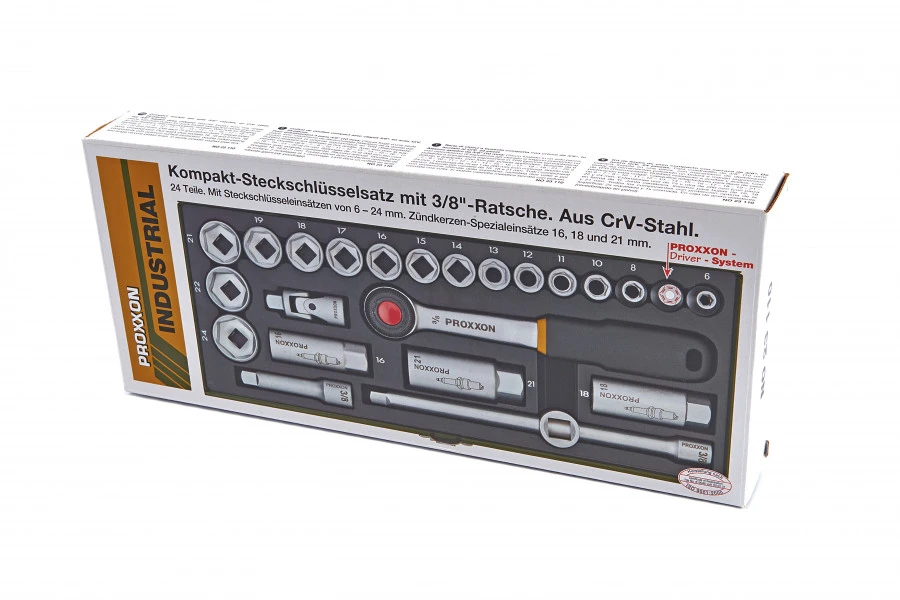 Over de 24-delige dopsleutelset van Proxxon (3/8”, Crv)