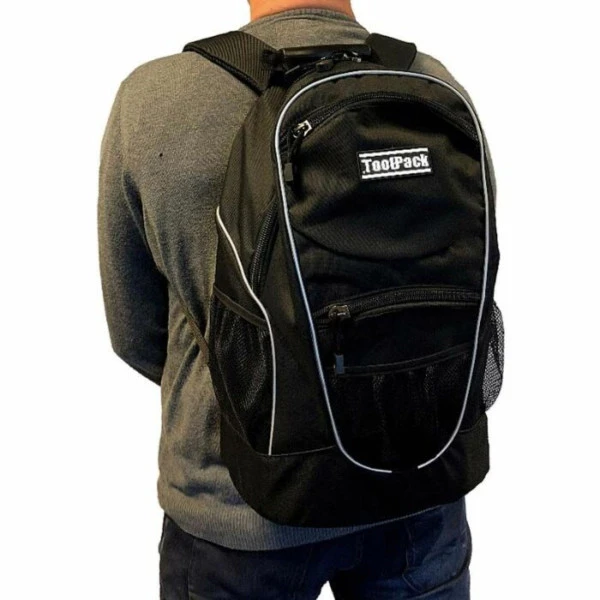 Ontdek de Toolpack Sane 2-in-1 multifunctionele rugzak in elegant zwart. Deze veelzijdige rugzak is geschikt voor zowel professioneel gebruik als vrijetijdsactiviteiten. Gemaakt van stevig 600D polyester met opvallende zilverkleurige reflectiestrepen voor duurzaamheid en zichtbaarheid.